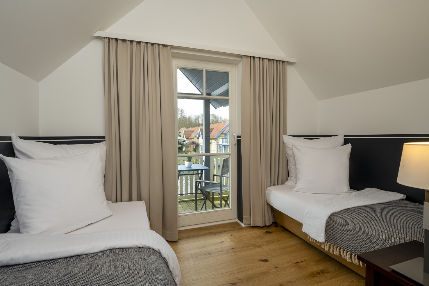 From elegant junior suites to exclusive penthouse suites, each accommodation offers comfort, space and stunning views of the marina and Lake Rheinsberg.